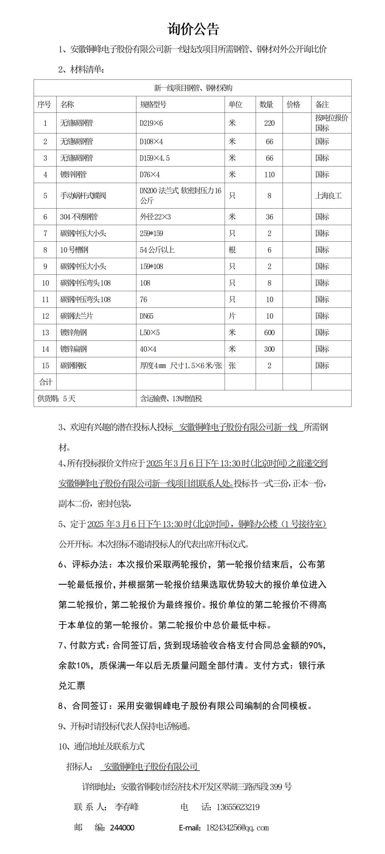bw必威西汉姆联官网新一线项目钢材询价公告_01