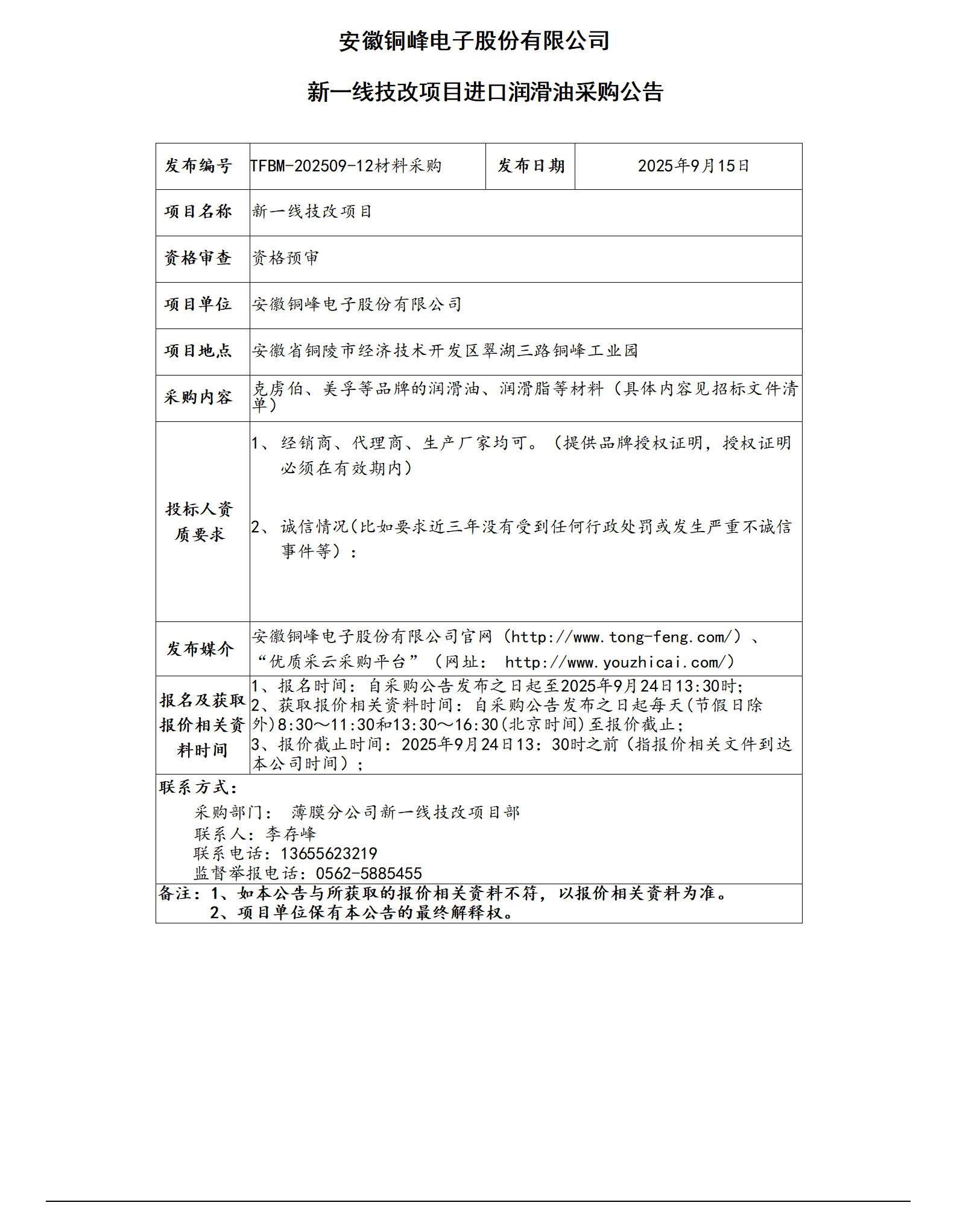 bw必威西汉姆联官网 (新一线技改项目进口润滑油采购公告)_01