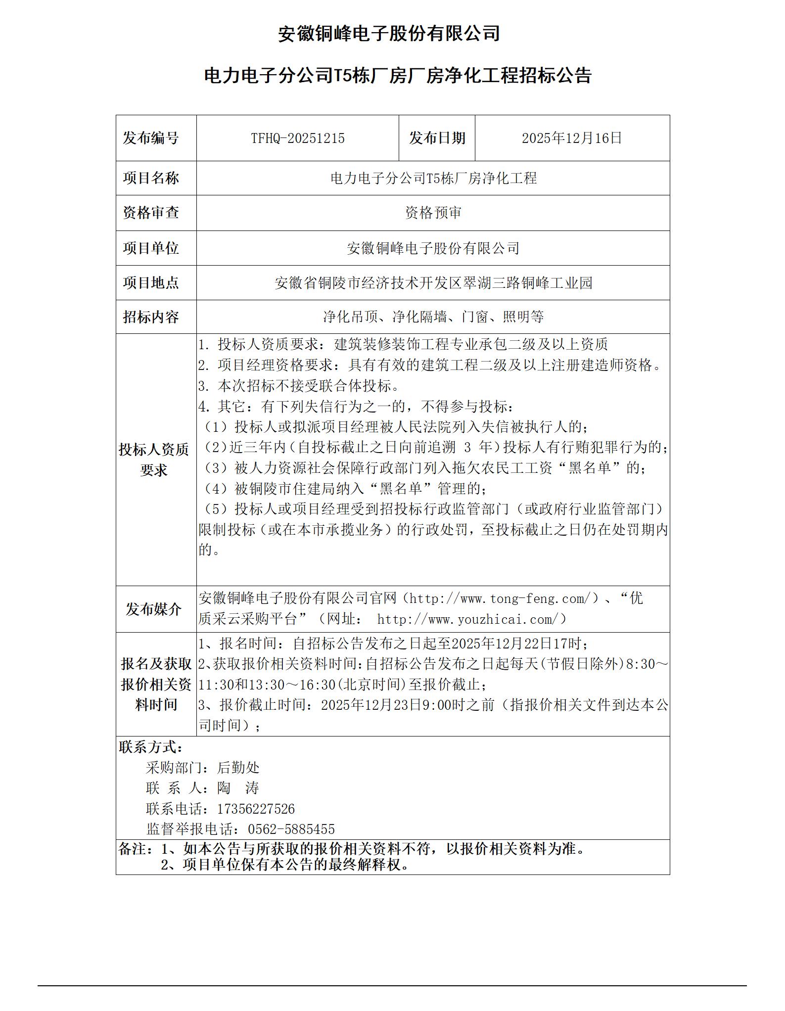 01bw必威西汉姆联官网 (电力电子分公司T5栋厂房净化工程 招标公告)_01