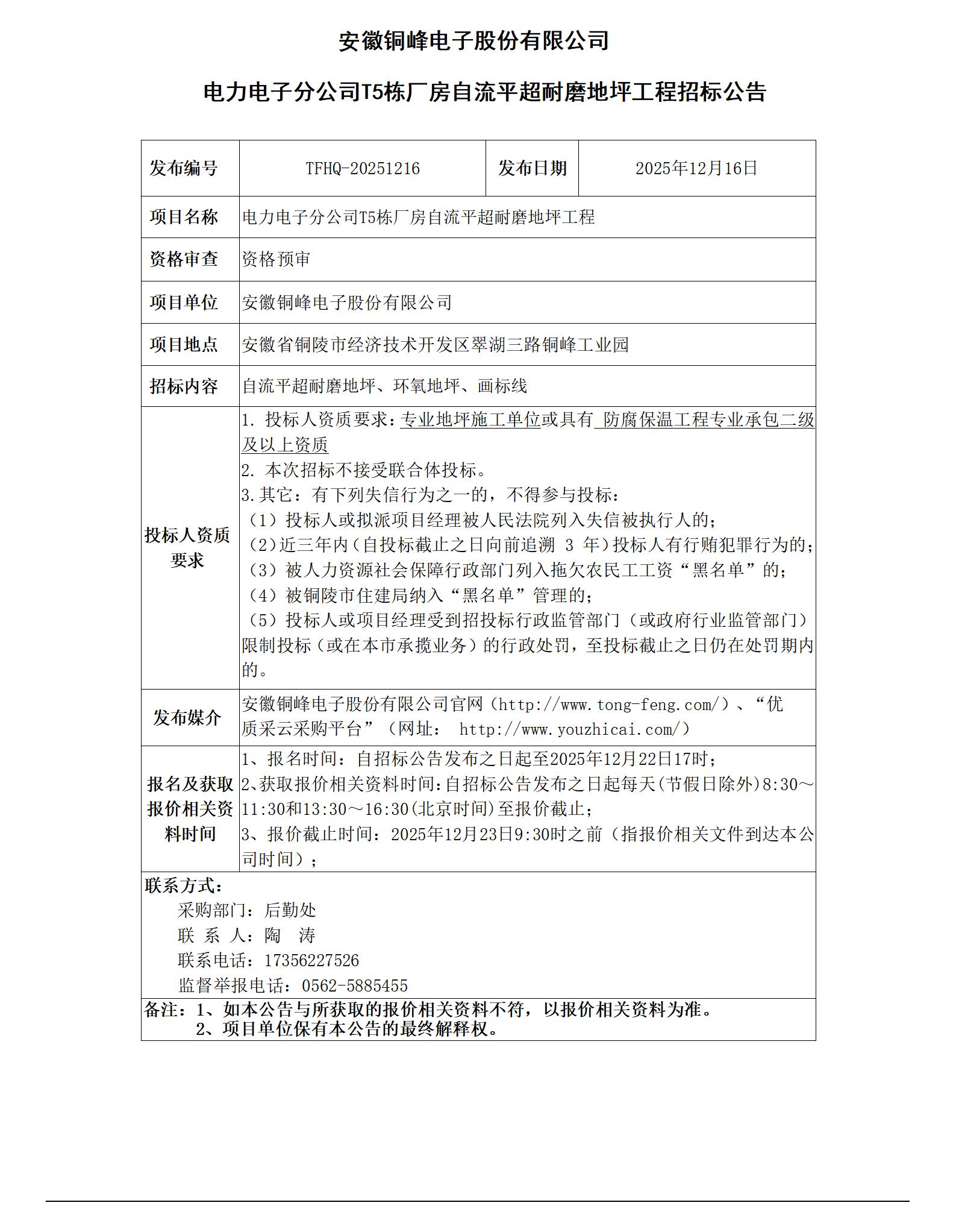 01bw必威西汉姆联官网 (电力电子分公司T5栋厂房自流平超耐磨地坪工程 招标公告)_01
