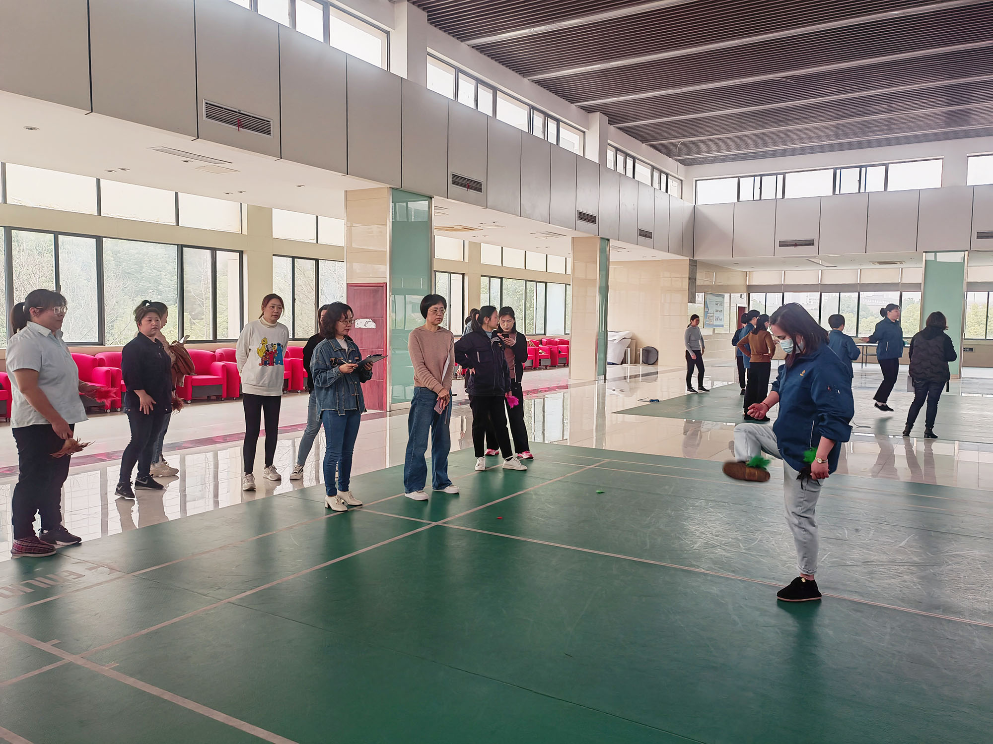 本次“三八”节系列文体活动设有“单人跳绳”“踢毽子”“7人集体跳绳”三个项目,共有119名女职工积极响应,踊跃参加。各项目比赛过程紧张有序、趣味横生。参赛队员们个个精神饱满,积极拼搏、奋力争先。特别是体现团队力量的集体跳绳项目,通过队友间的有效配合,使大家增强了团结协作精神和集体荣誉感。