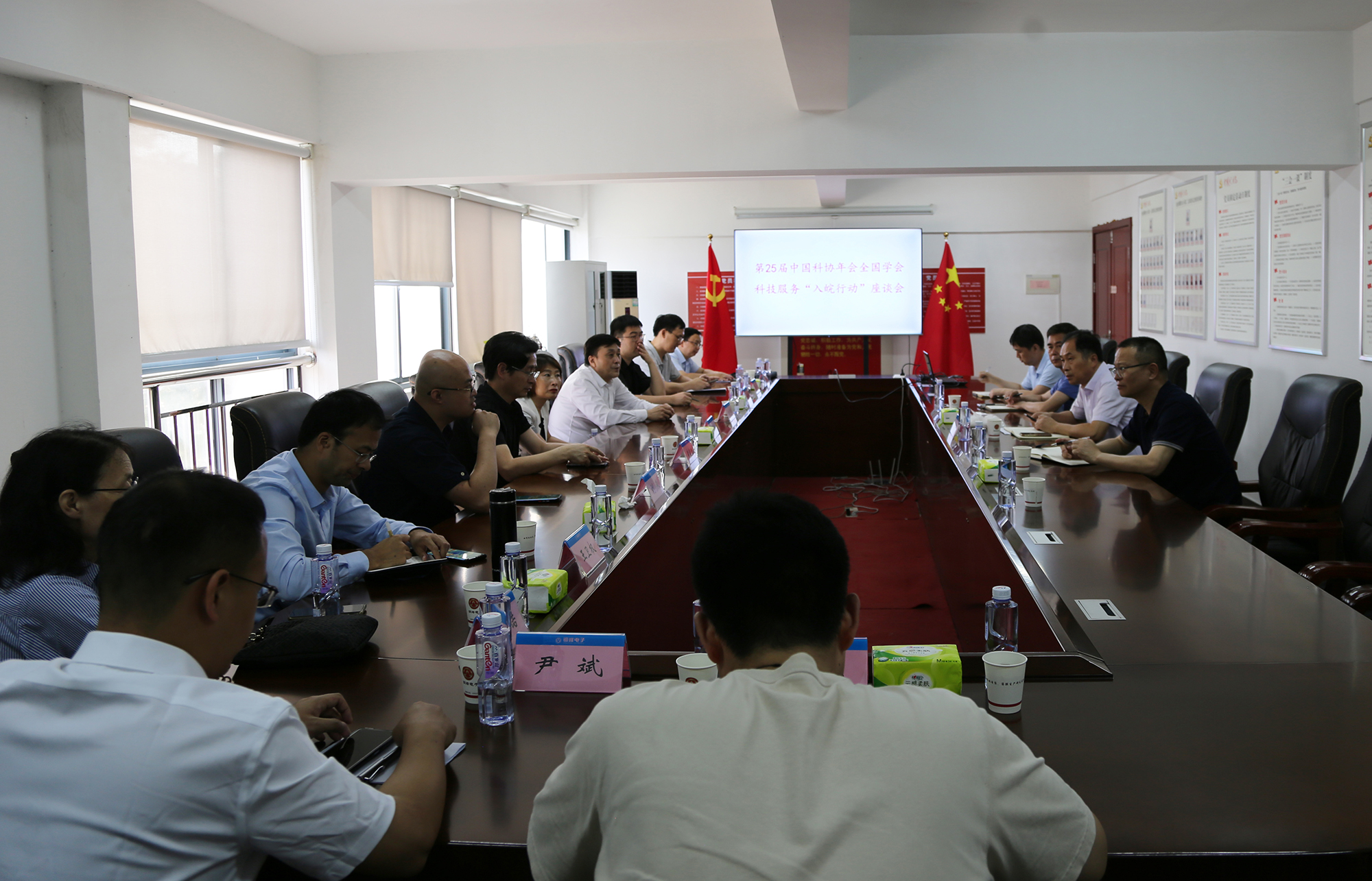 继公司提出的2项技术需求成功入选第25届中国科协年会“科技服务入皖行动”项目后,6月14日下午,中国科协学会服务中心组织相关国家级学会来公司就技术需求进行实地调研对接并召开座谈会。中国科协学会服务中心科技服务处处长沈进,安徽省科协党组成员、副主席魏军锋,市科协主席李直刚,中国电工技术学会、中国自动化学会、中国能源研究会可再生能源专委会、广东省科学院新材料研究所、哈尔滨工业大学等学会和高校的专家参加。公司党委书记、董事长黄明强和薄膜分公司、技术中心相关负责人陪同。