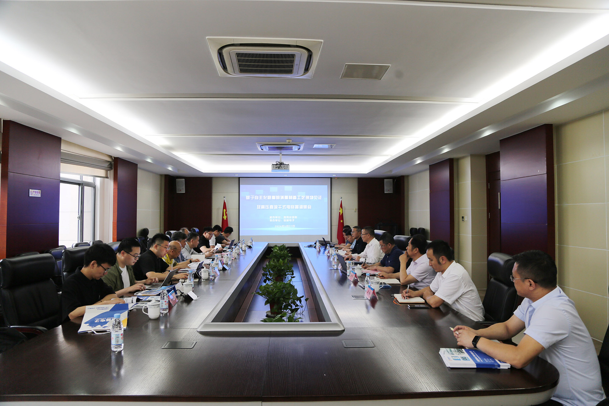 在首先举行的项目进展汇报会上,黄明强董事长致欢迎辞,对各位专家莅临指导表示热烈的欢迎和衷心的感谢。黄明强指出,在柔直电容器国产化进程中,铜峰公司充分发挥薄膜电容器一体化产业链的独特优势,与国家电网、国内知名高校院所和兄弟单位建立了深入的合作关系,通过持续技术创新,成功优化了国产粒子薄膜的制备工艺,实现了柔直电容器全国产化的突破。公司将继续与各合作方一道,坚定不移推进项目研发进程,早日实现柔直电容器及其介质材料的国产化广泛应用,培养和锻炼更多的产业链技术人才,不断提升企业的技术创新能力和核心竞争力,为我国的薄膜电容器产业贡献自己的力量。