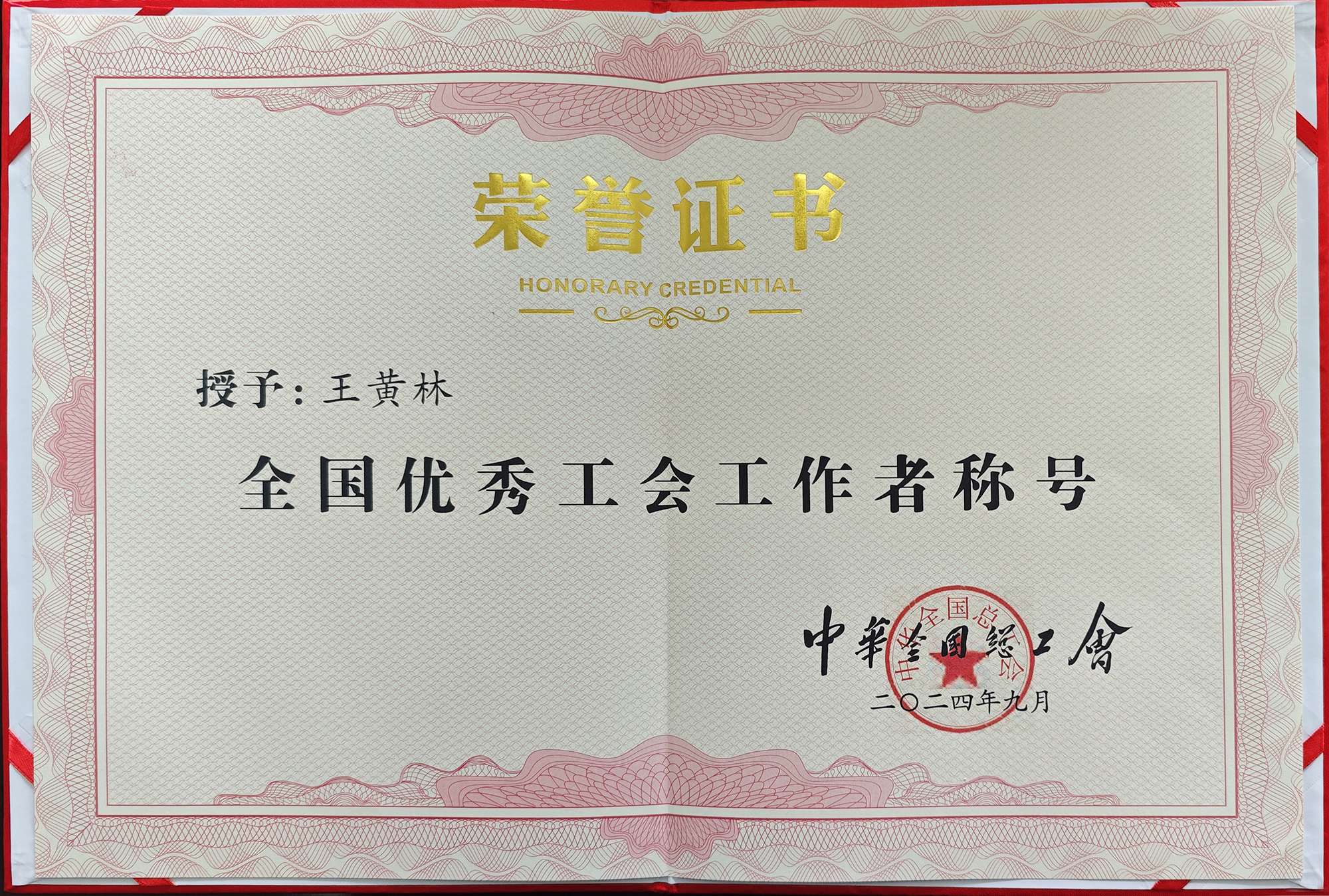全国优秀工会工作者称号的获得,既是对王黄林同志工作的肯定,也是对公司工会工作的认可。公司工会将以此为契机,进一步提升工会工作水平,为加快企业转型升级与高质量发展、提升职工幸福感获得感贡献工会力量。