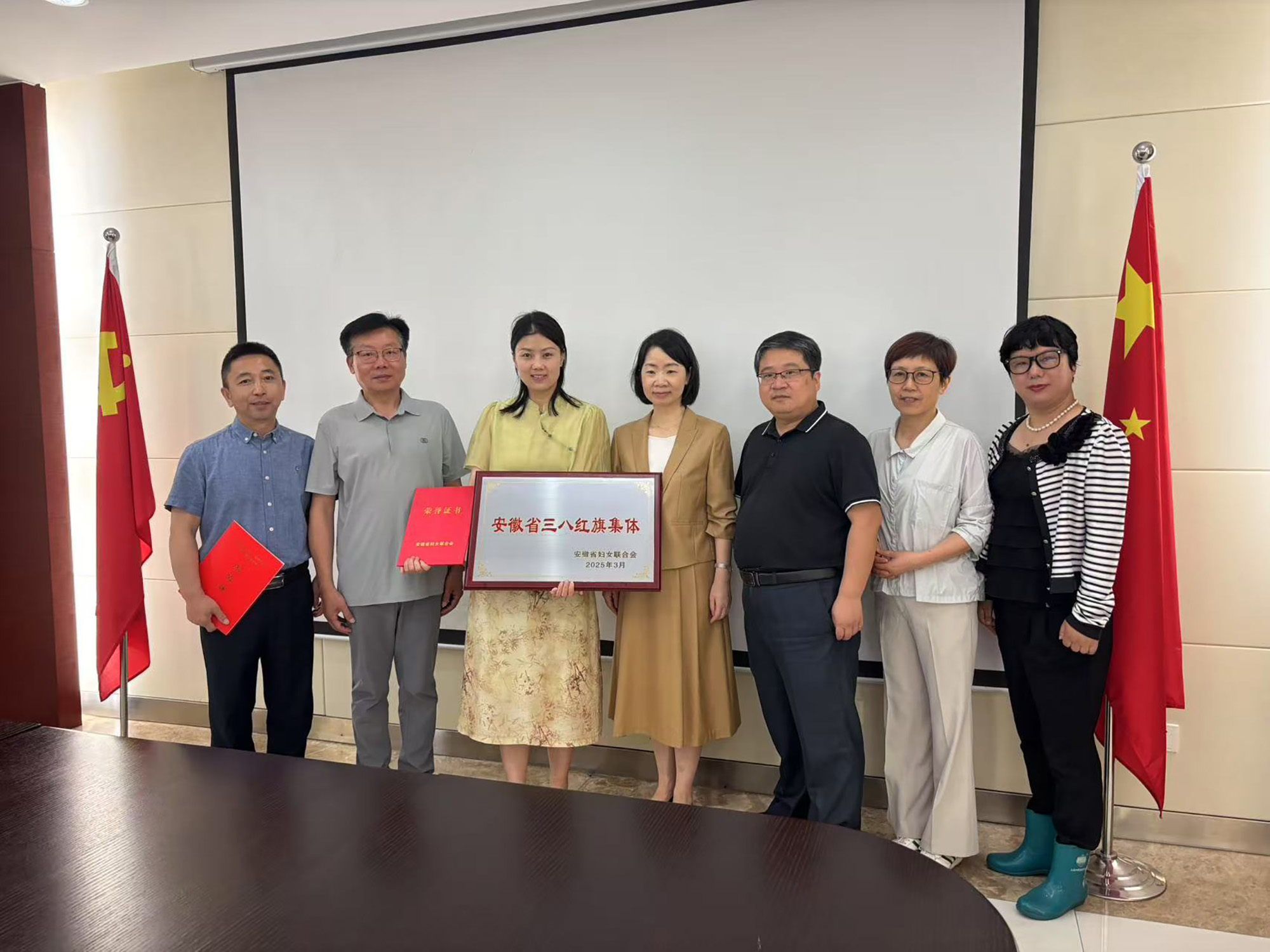 5月23日上午,市妇联主席许丽萍、副主席毛永红一行来公司为荣获“安徽省三八红旗集体”的公司女职工委员会授牌并进行座谈。铜陵经开区管委会副主任肖宗建、经开区妇工委主任俞琳慧,公司党委副书记、工会主席潘世宇、工会副主席王黄林和公司女工委负责人等参加。