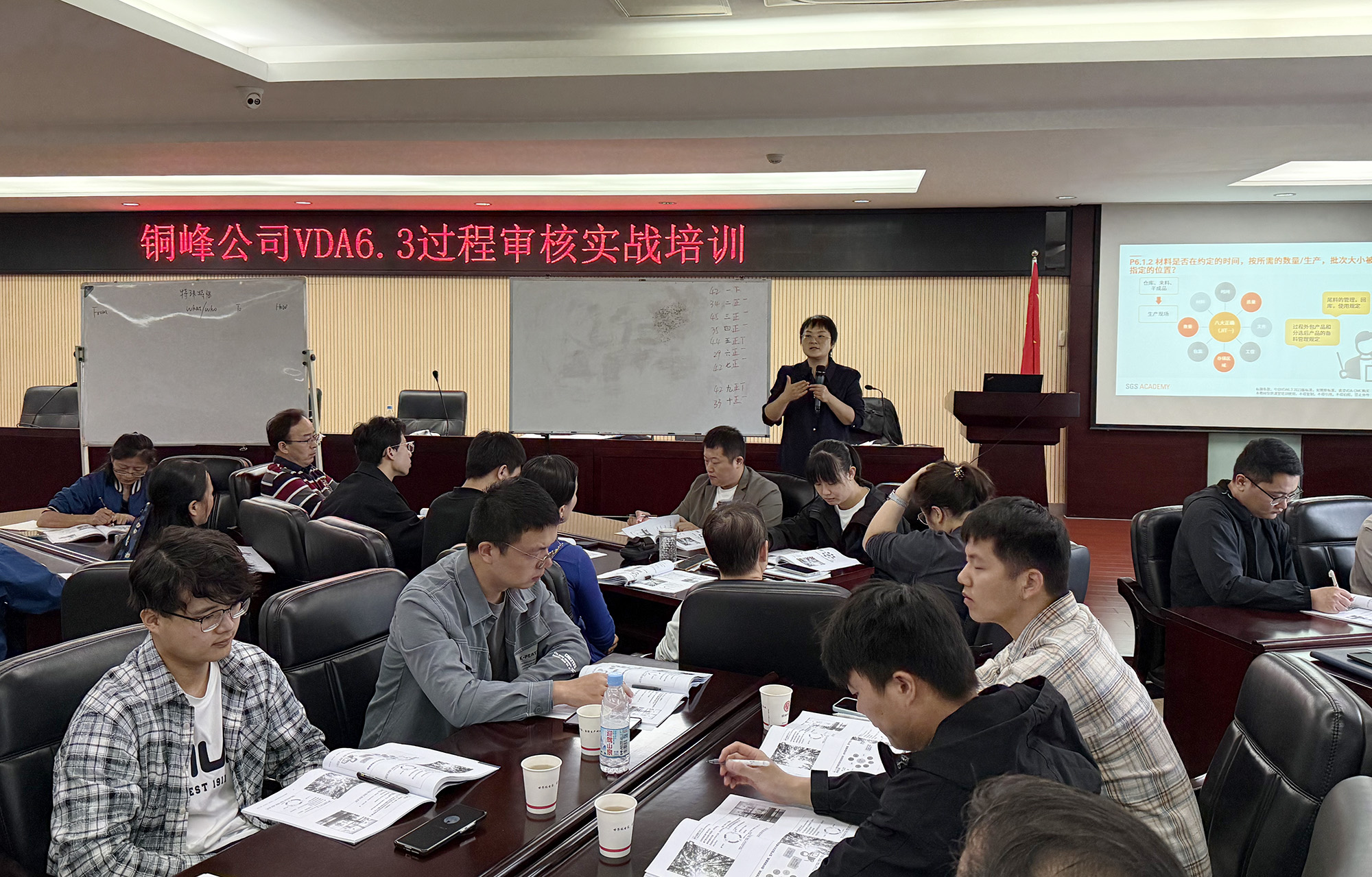 为进一步强化公司质量管理体系建设,提升过程审核专业能力,推动产品质量与运营效率双向升级,近日,公司特邀全球知名的检验、鉴定、测试和认证机构SGS的资深专家,开展了为期三天的VDA6.3:2023过程审核专项培训。来自各单位的技术骨干、质量管理人员及生产核心团队成员共同参与,通过“理论精讲+案例剖析+分组研讨”的多元化形式,圆满完成培训任务,取得显著成效。