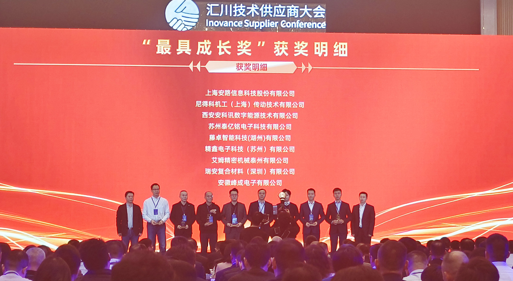 12月13日,以“数驱质领,聚势全球,共创未来”为主题的汇川技术2025供应商大会在苏州隆重举行。峰成公司凭借在技术研发、产品品质、交付及合作发展中的亮眼表现,从众多合作伙伴中脱颖而出,荣获汇川技术颁发的供应商“最具成长奖”。