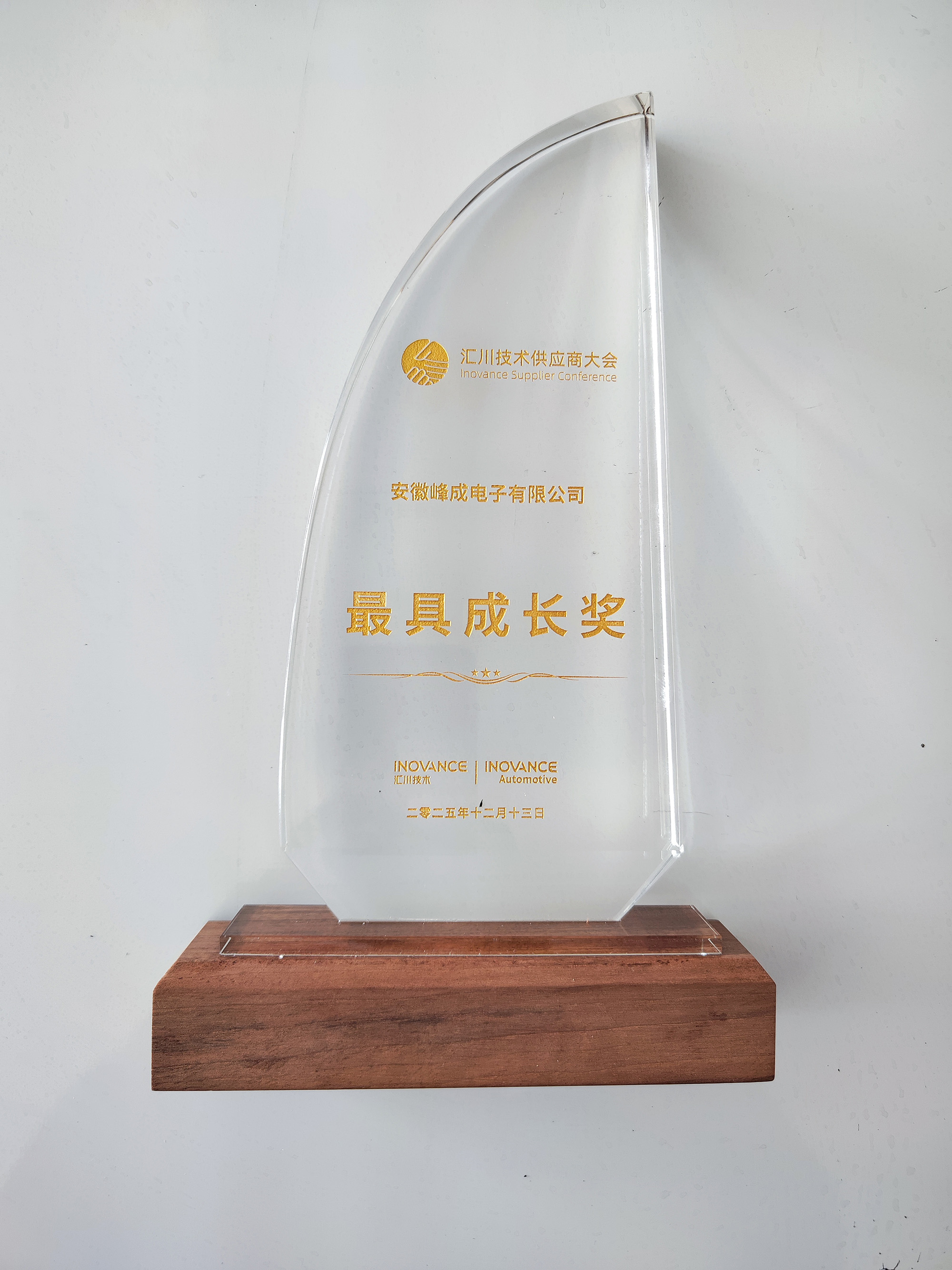 汇川联合动力是专注新能源汽车电驱与电源系统研发的国内龙头企业之一。“最具成长奖”旨在表彰在合作过程中展现出强劲发展势头、持续创新能力与卓越服务水平的合作伙伴。此次获奖,不仅是汇川技术对双方过往合作成果的肯定,更是对峰成公司综合实力与成长潜力的高度认可。面向未来,峰成公司将继续坚持创新驱动,加强新品研发,提升品质服务,推进双方互利合作再上新台阶,助力新能源汽车电子产业的高质量发展。